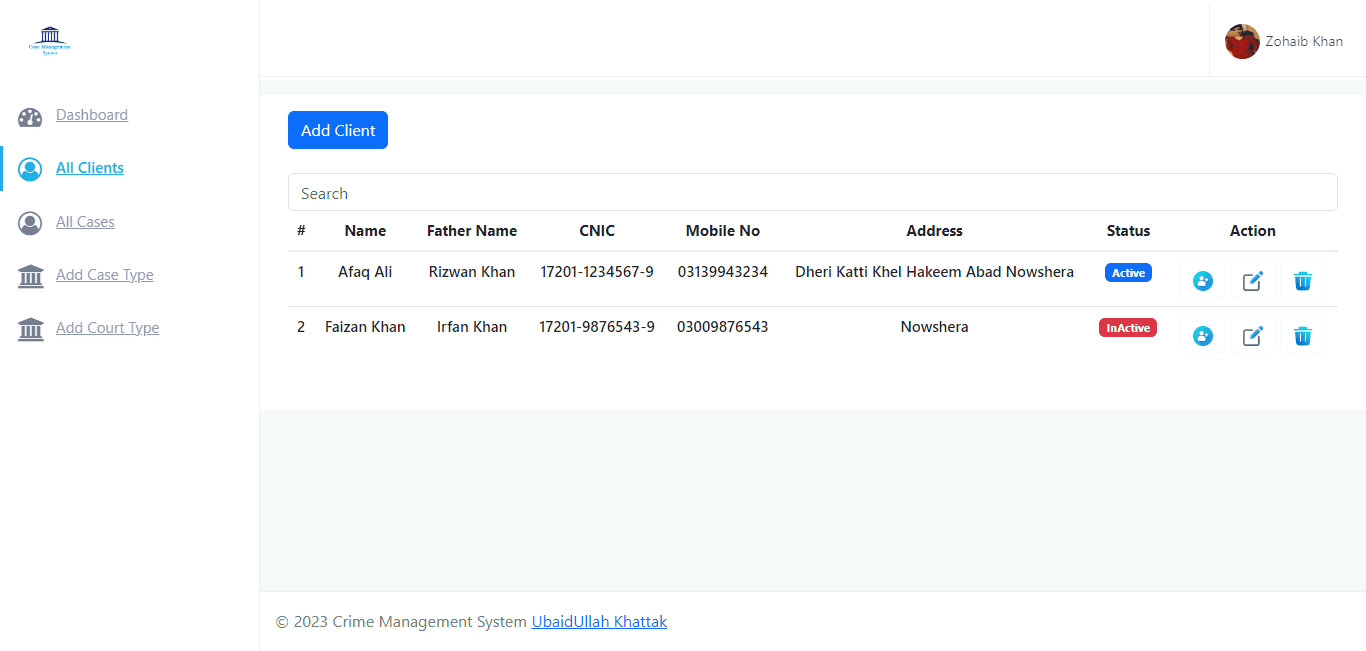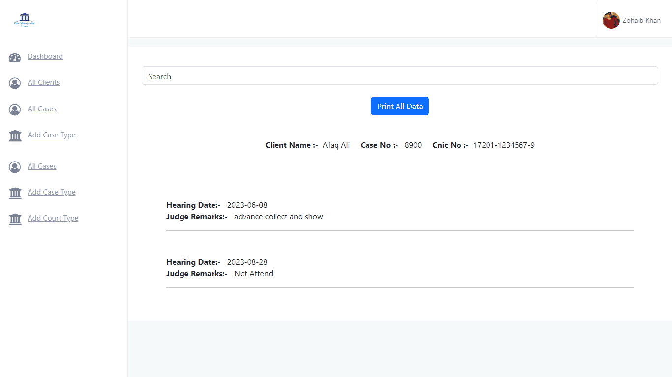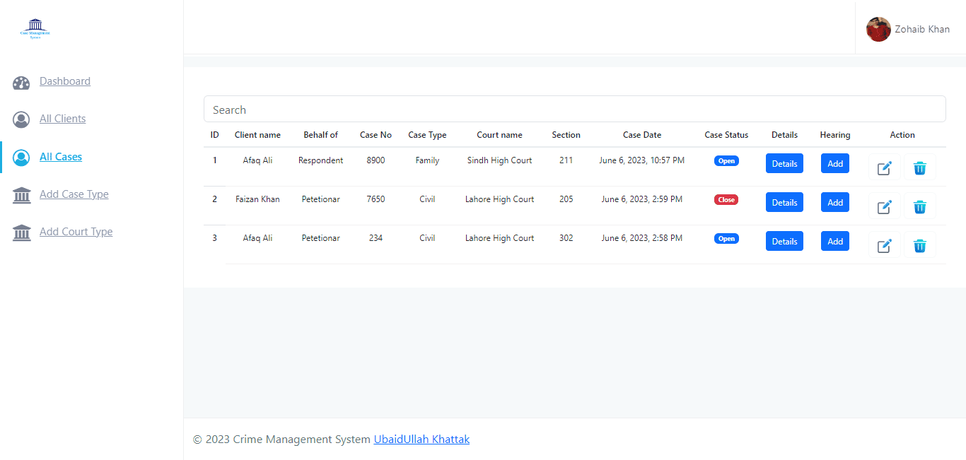 The Lawyer Case Management System is like a super-organized helper for lawyers. It's made for Ubaid Ullah Khattak, who wanted a way to keep track of cases easily. This system makes it smooth to manage cases, clients, and all the legal stuff, so lawyers can do their job better.